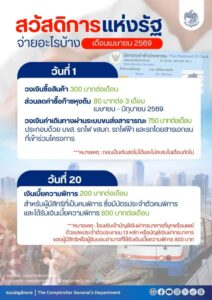 วันที่ 1 เมษายน 2569 ได้รับวงเงินสิทธิเพื่อซื้อสินค้าอุปโภคบริโภค และค่าเดินทาง ไม่สามารถถอนเป็นเงินสดได้และไม่สะสมในเดือนถัดไป ประกอบด้วย