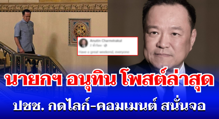 เมื่อวันที่ 18 เมษายน 2569 นายอนุทิน ชาญวีรกูล นายกรัฐมนตรี ได้โพสต์รูปภาพพร้อมกับข้อความสั้น ๆ ผ่านบัญชีเฟซบุ๊กส่วนตัว Anutin Charnvirakul โดยระบุว่า Have a great weekend, everyone ซึ่งแปลเป็นภาษาไทยได้ว่า ขอให้ทุกคนมีความสุขในวันหยุดสุดสัปดาห์