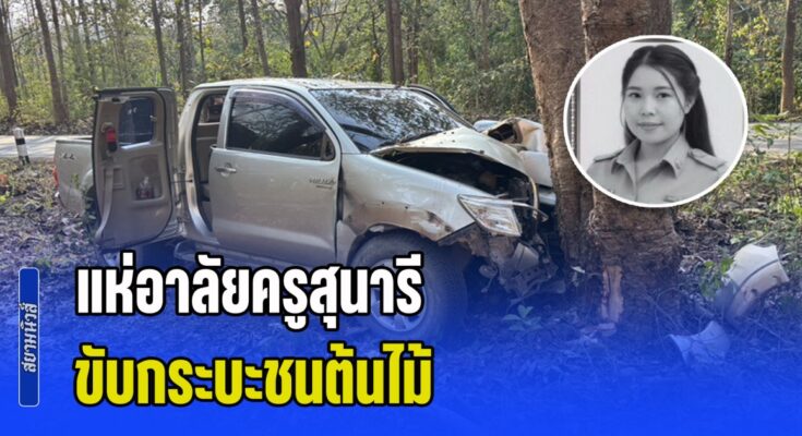 แห่อาลัยครูสุนารี ขับกระบะชนต้นไม้ ขณะกลับมาเตรียมสอน ส่วนนักเรียนที่นั่งมาด้วยบาดเจ็บ